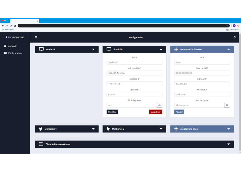 Gestionnaire d'ordinateurs et prises connectées